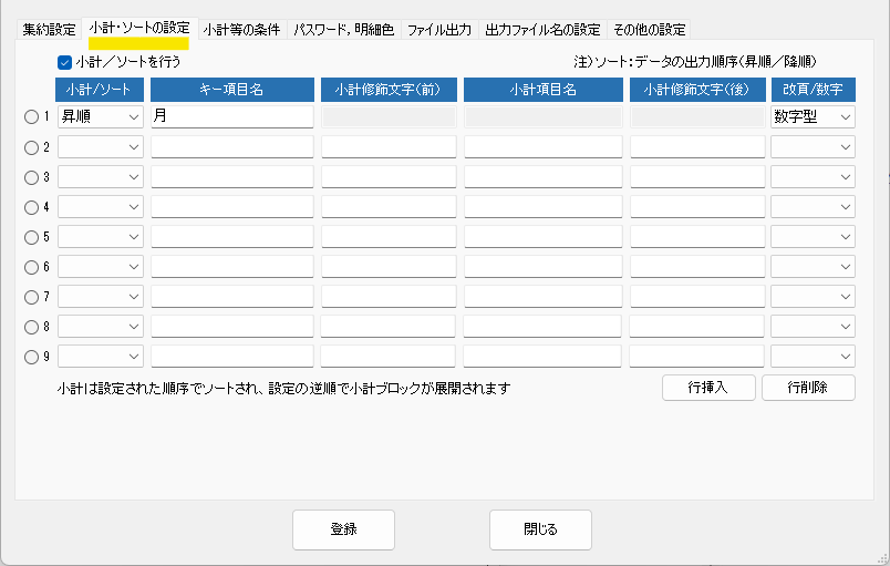 - 年度別の横開きをするには「集約する項目」で指定した「金額」に¥nを付けたものです。2年分しか想定していません。
